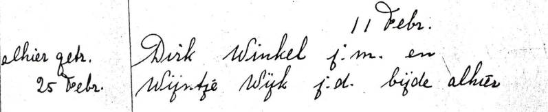 De inschrijving van het huwelijk van Dirk en Wijnte 25 febr 1787